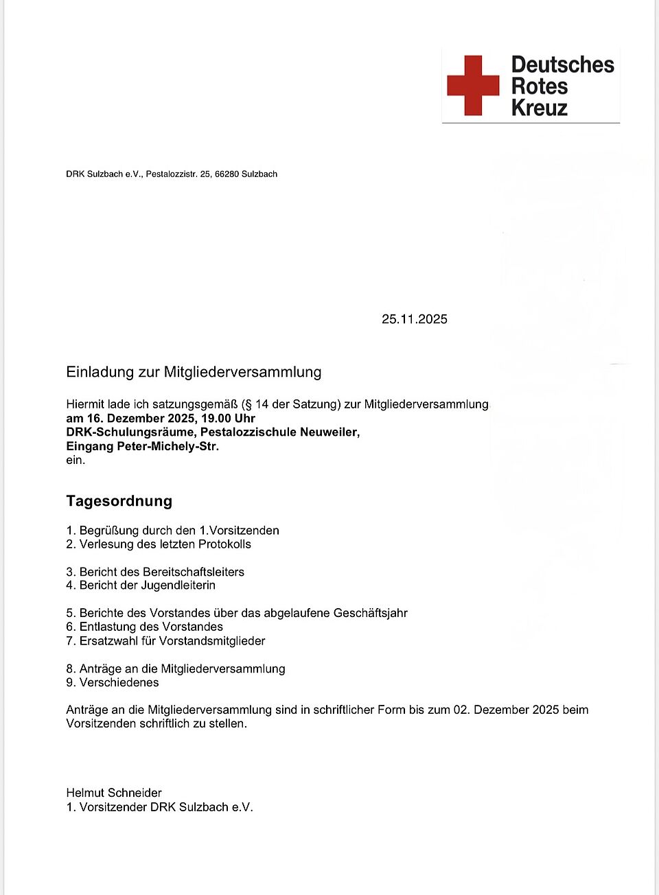 Natürlich freuen wir uns auch über jeden neuen Helfer und laden Sie recht herzlich zu unserem nächsten Ausbildungabend (jeden Dienstag, 19:30 Uhr in der Pestalozzistraße 25, 66280 Sulzbach) ein.